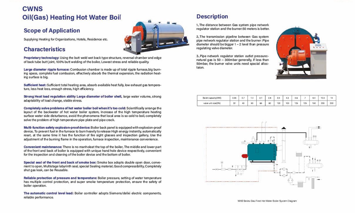 إن غلاية تسخين الماء الساخن بالزيت/الغاز CWNS مصممة لتوفير إمدادات مياه ساخنة موثوقة وفعالة للمؤسسات والفنادق والمباني السكنية والمرافق المختلفة. إنه يدمج ميزات التصميم المتقدمة وأنظمة السلامة لضمان التشغيل المستقر والكفاءة الحرارية العالية وعمر الخدمة الطويل.