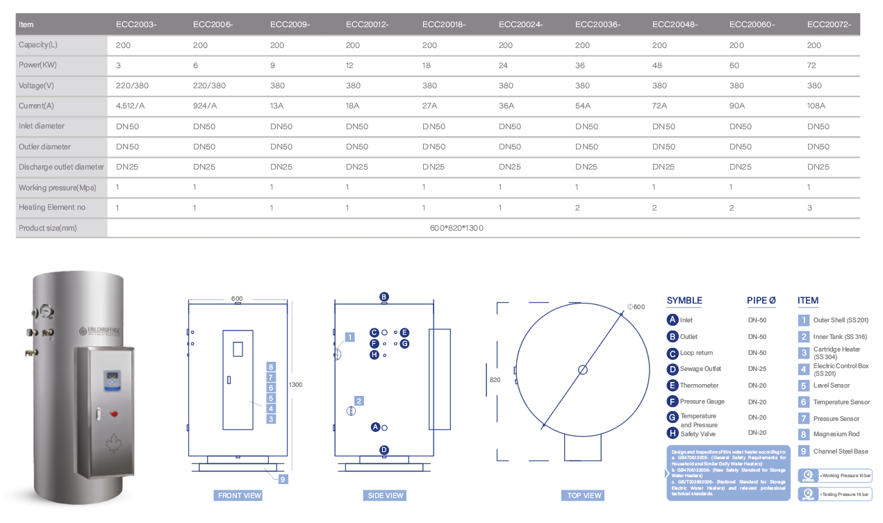 Grande capacité chauffe-eau électriques centraux, Les chauffe-eau à eau chaude sont conçus pour répondre aux besoins importants des installations commerciales et industrielles. Équipés d'une technologie de pointe pour assurer un débit d'eau chaude continu avec une grande efficacité, ils constituent la solution idéale pour les hôtels, les hôpitaux, les écoles, les usines et les grands bâtiments.