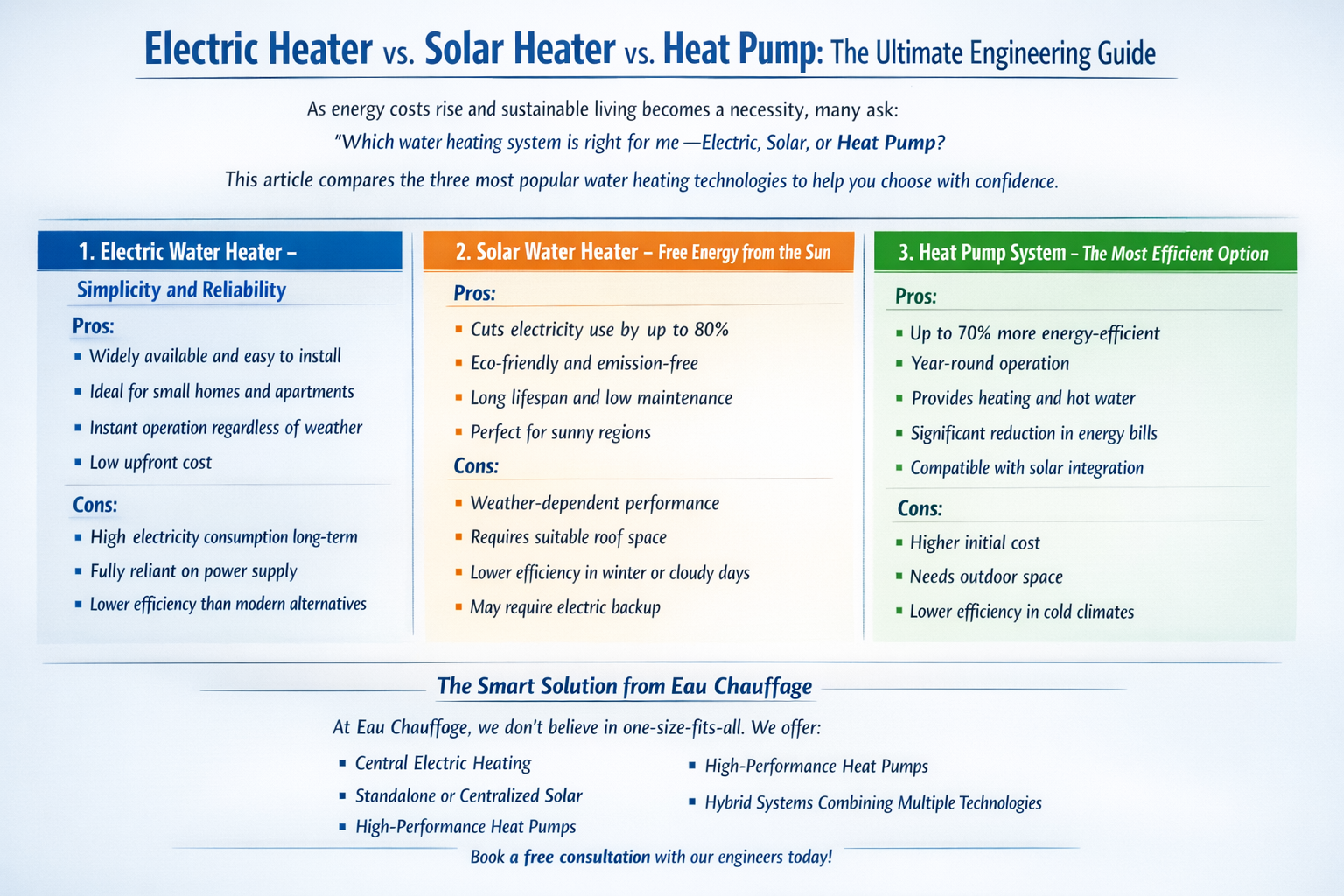 Electric Heater vs. Solar Heater vs. Heat Pump: The Ultimate Engineering Guide